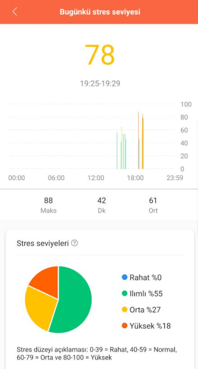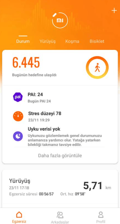 Bunların dışında sürekli uyku ve nabız takibi, detaylı nabız ve uyku istatistikleri ise Mi Band 5’te de mevcut. PPG biyosensörler yine son derece doğru ve neredeyse hiç hatasız ölçümler yapabiliyor. Bileklik, kişisel sağlık verilerinizi toplayıp daha sağlıklı ve zinde bir yaşam için çeşitli öneriler sunabiliyor. Ayrıca nefes egzersizi modu ile daha doğru ve etkili nefes alıp verme konusunda size yardımcı olabiliyor. Stres izleme göstergesi sayesinde ise stresli anları takip edip stresten kurtulmak için çeşitli bildirimler ve tavsiyeler sağlıyor. Stres seviyesi ölçümü modülü sayesinde günün hangi diliminde, hangi saatlerde ne kadar stresli olduğunuzu öğrenebiliyorsunuz. Yazılımla gelen en önemli özelliklerden bir diğeri ise PAI. Bu modül ile kalp atış hızı, yani nabız verileri ve yapılan egzersizler bir algoritma ile puanlanıyor ve size özel bir haftalık tablo ortaya çıkarılıyor. Bu tabloya göre uygulama size özel öneriler sunuyor. Kilo kontrolü ve sağlıklı bir yaşam için doğrusu oldukça iyi düşünülmüş ve verimli kullanıldığında işe yarıyor.